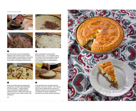 И даже обложка этой книги необычна. На ней не изображена еда, но стоит только навести смартфон, как она оживает в виде особого танца, где танцоры рассказывают о самых любимых татарских блюдах. Полиграфическое исполнение, как всегда, безупречно, 440 увесистых страниц великолепного наполнения делают книгу отличным подарком!